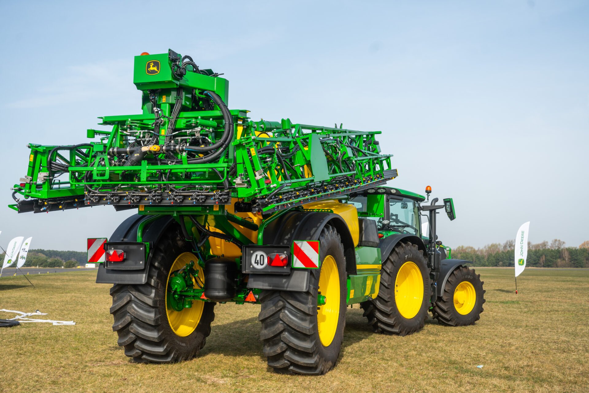 - Pracę R900 możemy opisać w trzech słowach: wydajna, komfortowa, precyzyjna. Co możemy dostosować w tym opryskiwaczu? Rozmiar zbiornika (od 4400 do 7500 L), , szerokość belki (od 24 do 40 m), sterowanie dyszami (mogą być rozstawione co 25 cm). Mamy pełną kontrolę nad procesem opryskiwania. Możemy zachować nawet drobną wielkość kropli i zminimalizować znoszenie oraz bez uszczerbku opryskiwać teren punktowo. Dzięki całej optymalizacji oszczędzamy nawet 5% na zakupie środków ochrony roślin – mówi Karol Zgierski, specjalista ds. produktu John Deere Polska.