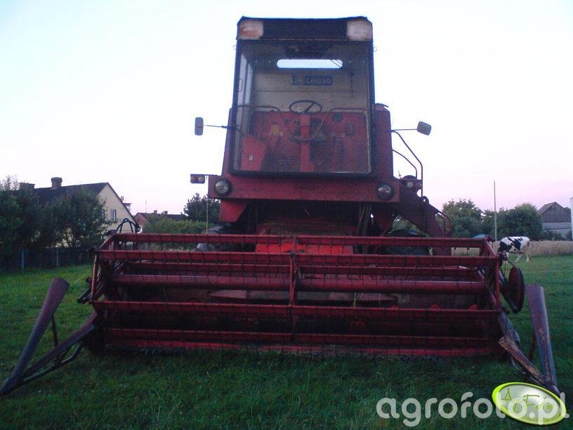 Kombajn Bizon Z056 Super podczas prac żniwnych na polu. Ta maszyna rolnicza, charakteryzująca się klasyczną czerwono-niebieską kolorystyką i charakterystycznym kształtem kabiny, jest przestronna i umożliwia operatorowi komfortową pracę. Bizon Z056 Super wyposażony jest w silnik SW400 o mocy 105 KM, co wystarcza do efektywnego napędzania całego układu żniwnego. Zastosowany heder z motowidłami, o szerokości roboczej 4,2 metra, pozwala na wydajne koszenie różnych rodzajów zbóż. Zbiornik ziarna o pojemności 2540 litrów umożliwia dłuższe okresy pracy bez konieczności częstego opróżniania, zwiększając tym samym efektywność operacji. Kombajn znajduje się na polu trawiastym, gotowy do rozpoczęcia sezonu żniwnego.