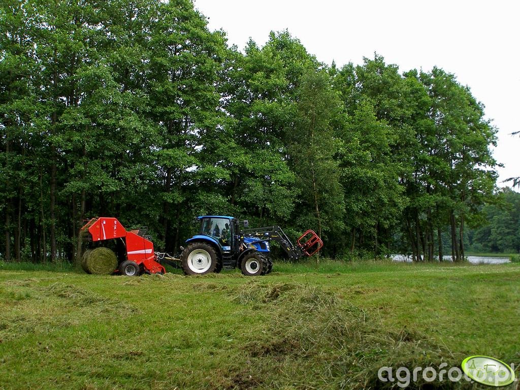 New Holland T6010 z prasą UNIA DF 120. 1.8 D nad jeziorkiem.