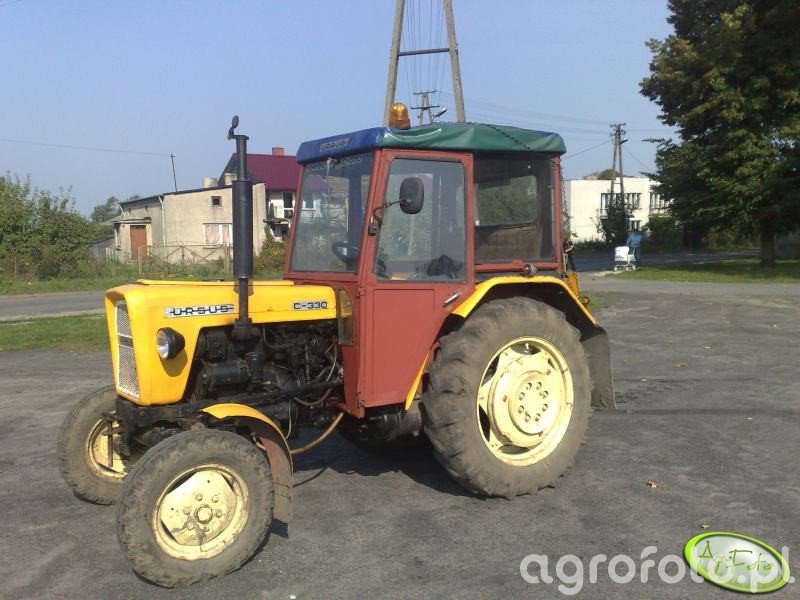 Ursus C-330 to lekki ciągnik rolniczy o mocy ok. 30 KM, napędzany dwucylindrowym silnikiem wysokoprężnym S-312C o pojemności 1960 cm³, produkowany w Zakładach Mechanicznych Ursus w Warszawie. Maszyna z charakterystyczną wąską maską i prostą kabiną świetnie sprawdza się w pracach pomocniczych na placu gospodarstwa, przy transporcie, lekkiej uprawie czy obsłudze maszyn zielonkowych, wykorzystując tylny TUZ o udźwigu około 800–900 kg. Mechaniczna skrzynia biegów 6 2, masa własna w granicach 1900–2000 kg oraz prosta hydraulika czynią C-330 ciągnikiem łatwym w obsłudze i serwisie, cenionym zwłaszcza w małych i średnich gospodarstwach. Model był produkowany w latach 1967–1987 i do dziś pozostaje popularny na rynku wtórnym, gdzie przybliżone ceny zadbanych egzemplarzy w Polsce mieszczą się zazwyczaj w przedziale 15–30 tys. zł w zależności od stanu technicznego i wyposażenia.