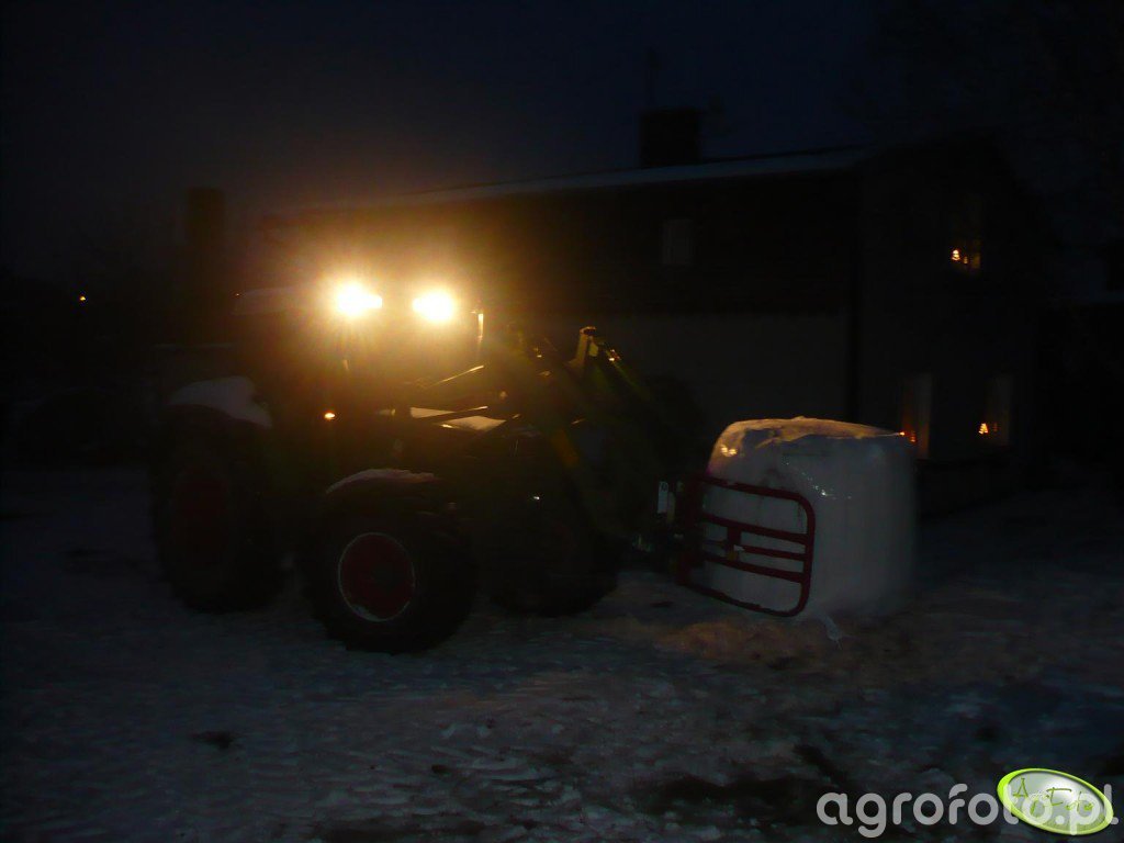 Ciągnik Fendt Farmer 310 Turbomatic z charakterystycznym ładowaczem czołowym pracuje na placu gospodarstwa, efektywnie owijając bele siana. Model ten jest napędzany silnikiem o mocy około 100 KM, co umożliwia doskonałe zarządzanie zwykłymi czynnościami gospodarczymi. Wyposażony w mechaniczno-hydrauliczny system Turbomatic, pozwala na płynne przełączanie biegów podczas pracy. Obecność 4-cylindrowego silnika z pojemnością skokową około 4,0 L dodatkowo wspomaga jego wydajność, czyniąc go wszechstronnym narzędziem w codziennej pracy rolniczej. Dzięki tej specyfikacji, Fendt Farmer 310 Turbomatic zapewnia operatorowi niezbędną siłę i zwrotność, co jest kluczowe podczas manipulowania ciężkimi ładunkami na terenie gospodarstwa.