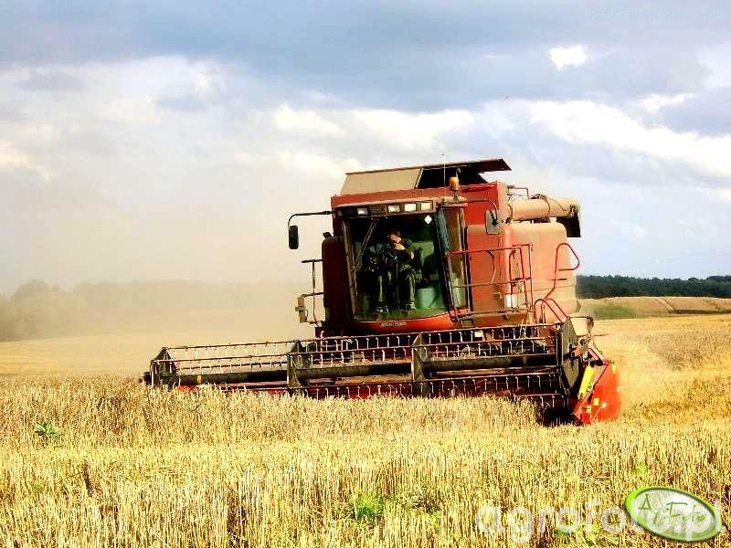 Kombajn zbożowy Case 2188 prezentowany na zdjęciu podczas zbioru zboża na polu. Wyposażony w mocny, 6-cylindrowy silnik o pojemności około 8,3 litra, generujący 280 KM, co zapewnia odpowiednią siłę do efektywnego omłotu. Maszyna korzysta z rotorowego systemu omłotu, który zwiększa wydajność dzięki dopracowanej przepustowości i mniejszym stratom ziarna. Pojemność zbiornika na ziarno wynosi 8 280 litrów, co pozwala na dłuższą pracę bez potrzeby częstego wyładunku. Na zdjęciu kombajn pracuje z hederem o szerokości około 6,1 metra, co przyspiesza proces zbioru i usprawnia operację na rozległych polach uprawnych. Dzięki tym charakterystykom, Case 2188 skutecznie radzi sobie z trudnymi warunkami polowymi, maksymalizując efektywność pracy.