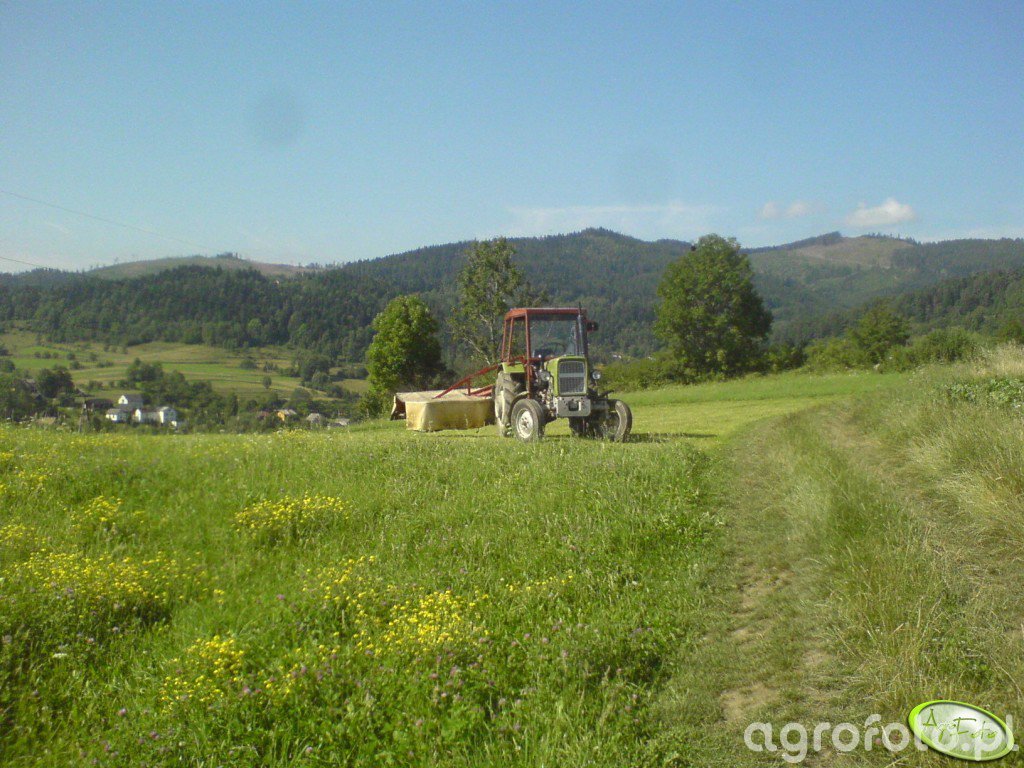 Ursus C-330 podczas koszenia traw na łące współpracuje z zawieszaną kosiarką dyskową, wykorzystując pełnię możliwości dwucylindrowego silnika S-312C o pojemności 1960 cm³ i mocy około 30 KM, produkowanego w Zakładach Mechanicznych Ursus. Ciągnik wyposażony jest w mechaniczną skrzynię biegów 6 2, co pozwala dobrać prędkość roboczą odpowiednią do gęstości runi i szerokości roboczej kosiarki. Masa własna około 1900 kg zapewnia wystarczającą stabilność przy pracy na nierównych użytkach zielonych, a tylny trzypunktowy układ zawieszenia o udźwigu w granicach 800–900 kg bez problemu obsługuje lekkie maszyny zielonkarskie. Model C-330 był produkowany w latach 1967–1987 i nadal jest popularny w małych gospodarstwach jako ciągnik do koszenia, zgrabiania czy lekkich prac transportowych, a przybliżone ceny używanych egzemplarzy w Polsce mieszczą się zazwyczaj w przedziale 15 000–30 000 zł w zależności od stanu technicznego.