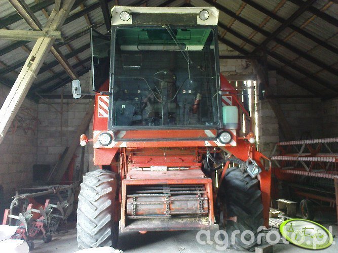 Kombajn Bizon Z058, sfotografowany w stanie spoczynku w stodole, reprezentuje popularny model polskiego producenta maszyn rolniczych. Charakteryzuje się charakterystycznym czerwono-białym malowaniem oraz prostokątną, przeszkloną kabiną operatora, co zwiększa wygodę pracy i widoczność w trakcie zbiorów. Model Z058 jest wyposażony w silnik wysokoprężny o mocy około 120 KM, który napędza system omłotu z bębnowym młocarnią, co zapewnia skuteczne przetwarzanie zebranych plonów. Zbiornik ziarna tego modelu posiada pojemność około 3 050 litrów, co umożliwia dłuższą pracę bez konieczności częstego opróżniania. Szerokość hedera z motowidłami, typowego dla tego modelu, umożliwia efektywne koszenie zbóż na dużych powierzchniach. Kombajn Bizon Z058 jest symbolem trwałości i niezawodności, często spotykanym w średnich gospodarstwach rolnych, gdzie nadal odgrywa istotną rolę w zbiorach zbożowych.