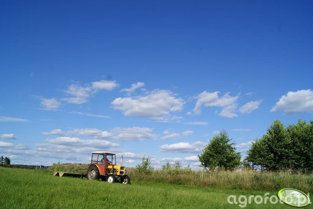 Ursus C-325 współpracuje z kosiarką bębnową Samasz Z010 podczas koszenia łąki, wykorzystując pełnię możliwości lekkiego, klasycznego ciągnika z lat produkcji 1963–1967. Maszyna napędzana jest 3-cylindrowym silnikiem wysokoprężnym S-312C o pojemności 1960 cm³ i mocy około 25 KM, przekazywanej na koła oraz WOM poprzez mechaniczną skrzynię biegów 6/2, co pozwala dobrać odpowiednią prędkość roboczą do gęstej runi. Masa własna ciągnika na poziomie około 1900 kg zapewnia stabilność agregatu z kosiarką, a tylny TUZ o udźwigu rzędu 800–900 kg bez problemu utrzymuje zawieszoną Z010 podczas podnoszenia na uwrociach. Prosta konstrukcja układu napędowego WOM ułatwia współpracę z kosiarką Samasz, szeroko stosowaną w małych i średnich gospodarstwach. Przybliżone ceny rynkowe zadbanych Ursusów C-325 w Polsce mieszczą się obecnie w przedziale 15–30 tys. zł w zależności od stanu i poziomu renowacji.