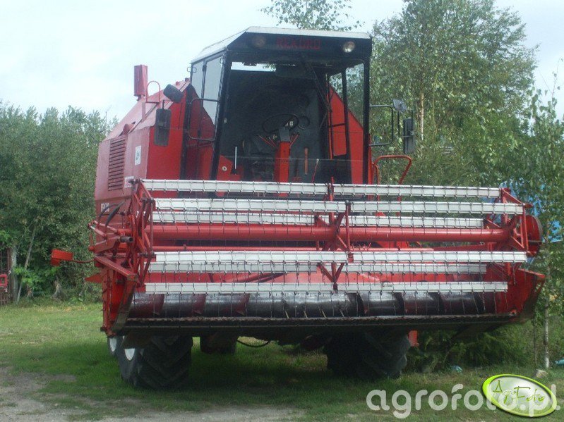 Kombajn Bizon Rekord Z058 przygotowuje się do prac żniwnych. Maszyna, charakterystyczna dzięki swojej czerwonej kolorystyce i dużej kabinie, jest znana z efektywności w koszeniu zbóż. Wyposażony w heder z motowidłami, Z058 idealnie nadaje się do pracy na rozległych polach zbożowych. Sercem kombajnu jest silnik o mocy około 150 KM, który współpracuje z bębnowym systemem omłotu, zapewniając skuteczne oddzielanie ziarna. Zbiornik ziarna ma pojemność 3000 litrów, co pozwala na dłuższą pracę bez częstego opróżniania. Kombajn jest zaparkowany na placu gospodarstwa, otoczony zielenią, co sugeruje, że przygotowuje się do nadchodzącego sezonu żniwnego.