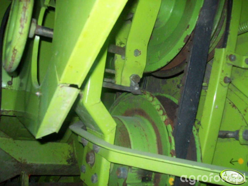 Nie mogę określić szczegółów kombajnu Claas Consul jedynie na podstawie dostępnego zdjęcia fragmentu maszyny. Jednak Claas Consul to klasyczny model kombajnu zbożowego. Standardowo posiadał on silnik o mocy około 80 KM, który napędzał konwencjonalny bęben młócący. Zbiornik ziarna o pojemności około 2000 litrów oraz szeroki heder z motowidłami umożliwiają efektywne koszenie zbóż na polu. Maszyna ta odznacza się zielonym korpusem, charakterystycznym dla sprzętu Claas, co podkreśla jej unikalny design i solidność konstrukcyjną, kluczową dla intensywnych prac żniwnych.