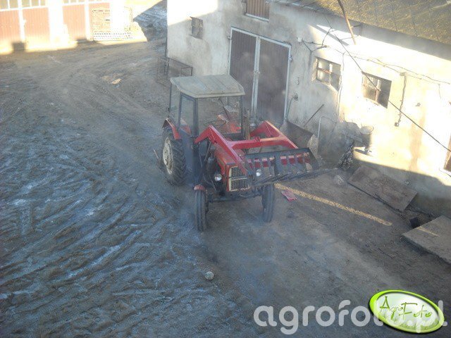Ursus C-330 z ładowaczem czołowym TUR pracuje na placu gospodarstwa jako lekki, zwrotny ciągnik pomocniczy, wykorzystywany do przeładunku obornika, materiałów sypkich i transportu palet w obejściu. Dwucylindrowy silnik wysokoprężny S-312C o pojemności 1960 cm³ rozwija około 30 KM, co przy masie własnej około 1900 kg zapewnia wystarczającą trakcję do pracy z lekkim osprzętem czołowym. Skrzynia biegów 6 2 umożliwia dobór przełożeń zarówno do manewrowania na ciasnym podwórzu, jak i do dojazdu z przyczepą po drogach polnych. Produkowany w latach 1967–1987 Ursus C-330 w wersji z TUR-em pozostaje popularny w małych i średnich gospodarstwach, gdzie pełni funkcję uniwersalnego ciągnika do codziennych prac, a przybliżone ceny zadbanych egzemplarzy na rynku wtórnym w Polsce mieszczą się zazwyczaj w przedziale 18–30 tys. zł.