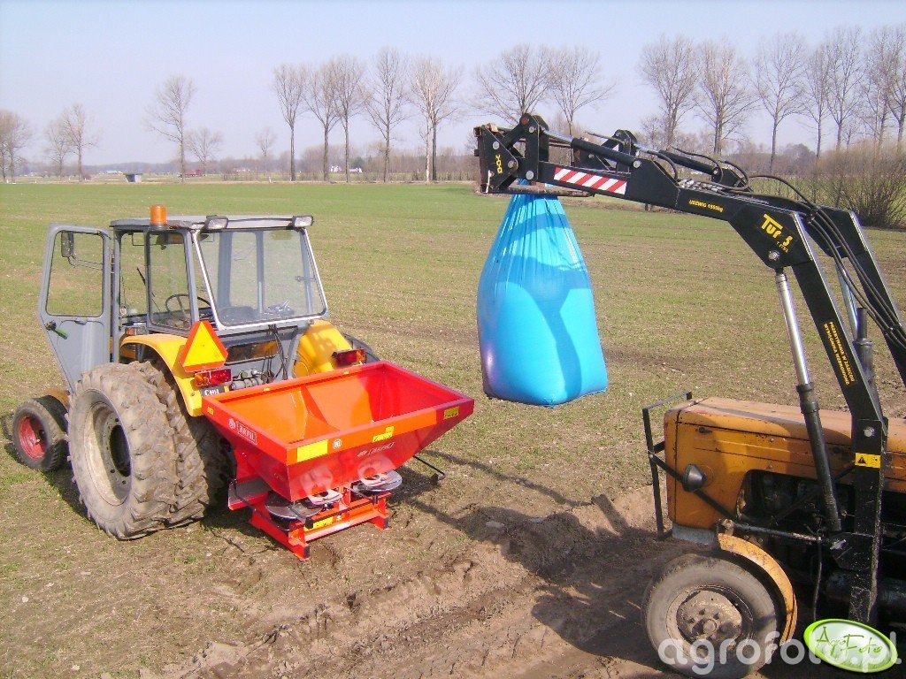 jaguar235 5 Opublikowano 7 Kwietnia 2011 jak mierzyliśmy to wysiewał na 18m ale może rozsiewać na więcej w wyposażeniu ma hydrauliczne sterowanie zasuwami. bliźniaki połączone są za pomocą łańcuchów(takie jak odciągi od lag).Kabina jest w nim od nowości z Kunowa na widoczność nie narzekam w końcu to tylko sześćdziesiątka. Odnośnik do komentarza https://www.agrofoto.pl/forum/gallery/image/281201-ursus-c-360-akpil/#findComment-669735