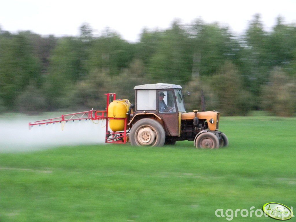 Ursus C‑330 z lat produkcji 1967–1987 współpracuje tu z polowym opryskiwaczem zawieszanym Biardzki, wykonując zabieg ochrony roślin na polu uprawnym. Dwucylindrowy silnik wysokoprężny S‑312C o pojemności 1960 cm³ rozwija około 30 KM, co w połączeniu z prostą, niesynchronizowaną skrzynią biegów 6/2 pozwala na stabilną, równomierną jazdę z prędkością roboczą odpowiednią do oprysku. Masa własna ciągnika na poziomie ok. 1900 kg zapewnia wystarczającą stateczność przy zawieszonym opryskiwaczu, a tylny TUZ o udźwigu około 900–1000 kg bez problemu przenosi typowy zbiornik Biardzkiego o pojemności 400–600 l. Zestaw jest często wybierany w małych i średnich gospodarstwach ze względu na niskie koszty eksploatacji, dużą dostępność części zamiennych i przybliżoną cenę używanego Ursusa C‑330 w Polsce na poziomie 18–28 tys. zł w zależności od stanu technicznego.