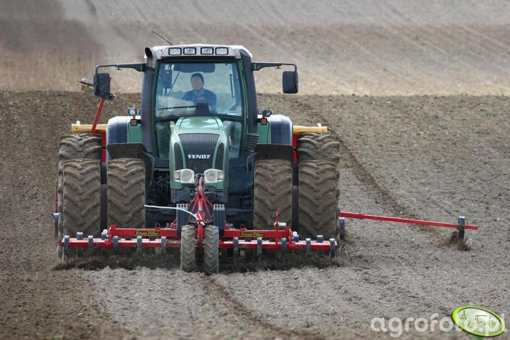 Ciągnik Fendt Vario 926 intensywnie pracuje na polu, współpracując z agregatem uprawowym Vaderstad. Ta maszyna, napędzana silnikiem o mocy 260 KM, wyposażona jest w sześciocylindrową jednostkę o pojemności 7,1 litra, co zapewnia jej wystarczającą siłę do efektywnej uprawy dużych powierzchni. Bezstopniowa skrzynia biegów Vario umożliwia płynne dostosowanie prędkości jazdy, co jest kluczowe podczas precyzyjnych prac polowych. Wsparcie w postaci wysokiego maksymalnego udźwigu tylnego TUZ-u pozwala z łatwością unieść ciężki sprzęt, jakim jest agregat Vaderstad. Ta zaawansowana technika składa się na zdolność do wykonania intensywnych zadań polowych z wyjątkową skutecznością i elastycznością.