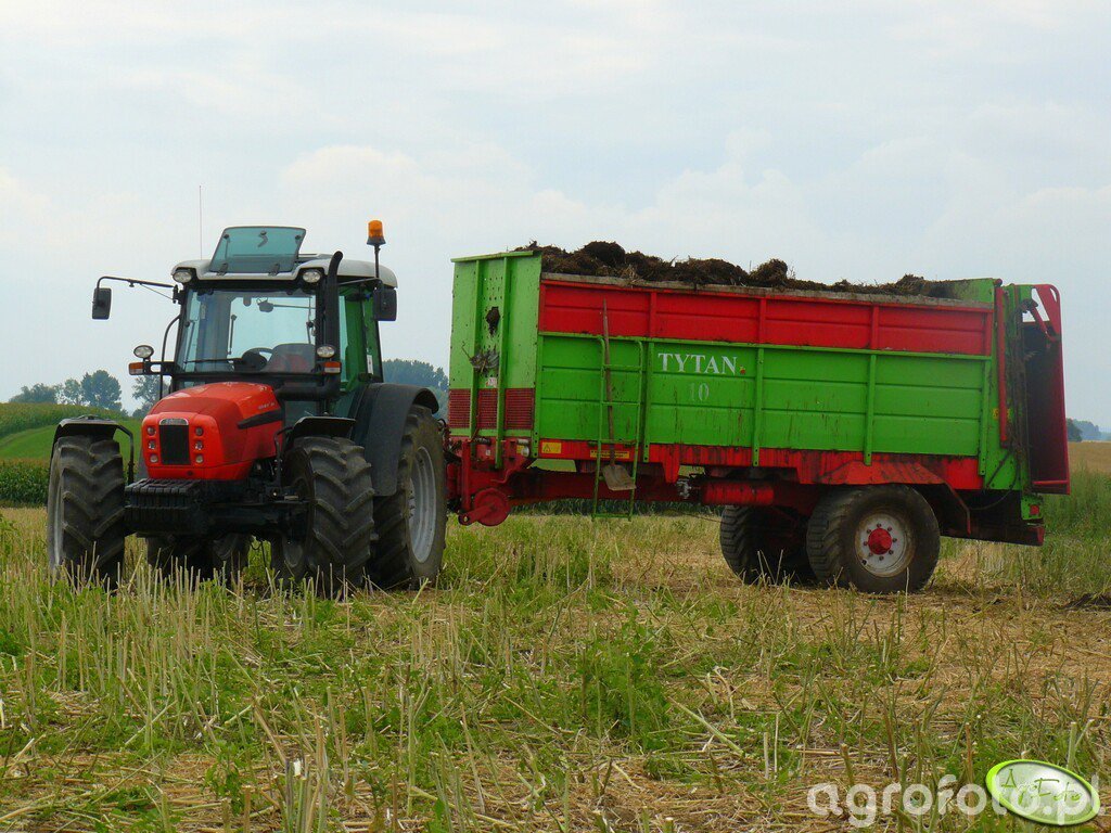 Ciągnik rolniczy Same Explorer3 100 jest solidną propozycją dla gospodarstw poszukujących niezawodnego sprzętu do pracy w polu. Wyposażony w silnik o mocy 100 KM produkcji Same Deutz-Fahr, posiada 4-cylindrową jednostkę napędową o pojemności około 4 litrów. Jego skrzynia biegów oferuje 30 przełożeń do przodu i 15 do tyłu, co zapewnia elastyczność w różnych warunkach terenowych. Masa własna ciągnika wynosi około 4000 kg, a udźwig tylnego podnośnika wynosi 5000 kg, co czyni go wszechstronną maszyną zdolną do pracy z szerokim wachlarzem narzędzi. Explorer3 100 produkowany był w latach 2008–2011, a używane egzemplarze dostępne są na rynku w przybliżonej cenie 80 000–120 000 PLN. Podczas pracy z rozrzutnikiem obornika Tytan 10, Same Explorer3 100 pokazuje swoje zalety w efektywnym rozrzucaniu nawozów naturalnych, co poprawia jakość gleby i zwiększa plony. Tytan 10 charakteryzuje się dużą pojemnością, co w połączeniu z mocą i wytrzymałością ciągnika, pozwala na wydajną pracę na dużych powierzchniach pola.