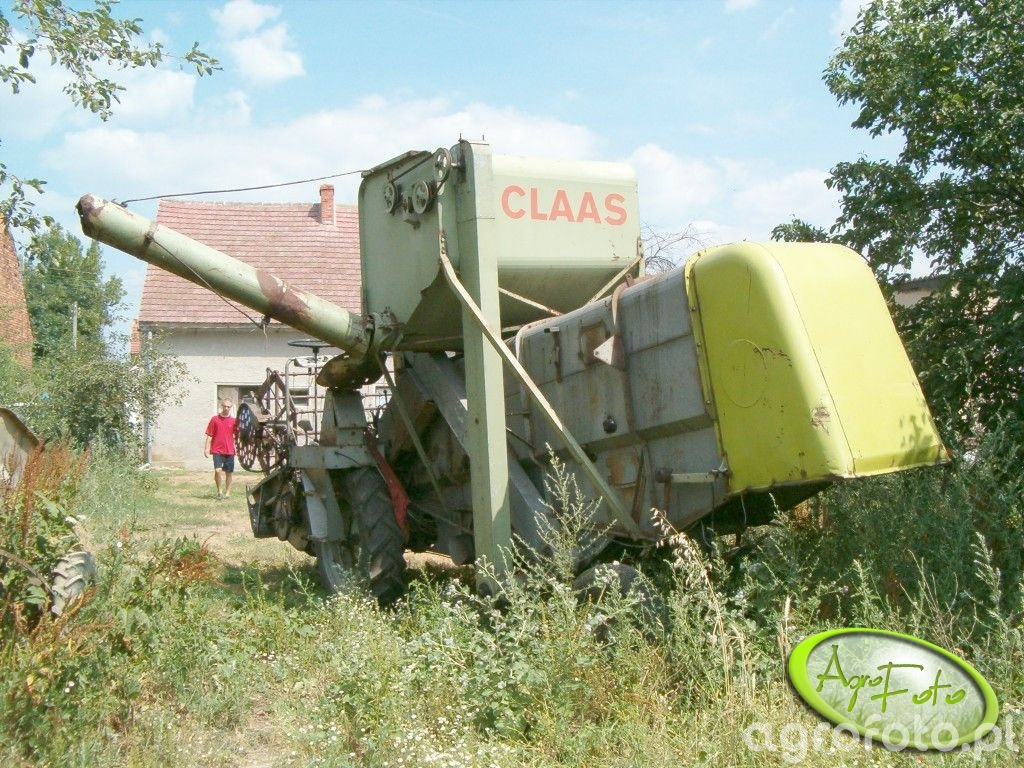 Kombajn Claas z serii Dominator, klasyczna maszyna żniwna, uchwycony na placu gospodarstwa, prawdopodobnie po zakończeniu prac polowych. Charakterystyczna, zielona kolorystyka Claas i wyraźne logo zdobiące kabinę podkreślają jego markę. Maszyna jest wyposażona w heder z motowidłami, co sugeruje jej zastosowanie do koszenia zbóż. Układ omłotowy wsparcia rotorowego umożliwia wydajne przetwarzanie zbieranego materiału. Moc silnika w podobnych modelach tej serii wynosi około 150 KM, co zapewnia solidne wsparcie podczas intensywnych żniw. Pojemność zbiornika ziarna wynosi w przybliżeniu 5 600 litrów, co pozwala na dłuższą pracę bez konieczności częstego opróżniania. Kombajn umiejscowiony na tle rustykalnego gospodarstwa, świadczy o swoim praktycznym, codziennym zastosowaniu w tradycyjnym rolnictwie.