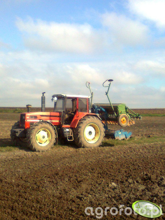 Ciągnik rolniczy Same Laser 150 Turbo, zaprezentowany w trakcie pracy polowej, stanowi solidne rozwiązanie dla zadań wymagających dużej mocy i wytrzymałości. Wyposażony w silnik o mocy 150 KM i sześciu cylindrach, ten model wyróżnia się pojemnością 7146 cm³. Posiada skrzynię biegów z 24 przełożeniami, co zapewnia elastyczność w różnorodnych warunkach terenowych. Produkowany w latach 1990–1996, jest ceniony za swój udźwig tylnego TUZ, wynoszący 6500 kg. Orientacyjny zakres cen rynkowych używanych egzemplarzy w Polsce oscyluje w granicach 40 000–60 000 zł. Często współpracuje z siewnikiem Amazone, znanym z precyzyjnego siewu, co czyni zestaw idealnym do efektywnego zarządzania zasiewami na dużych polach.