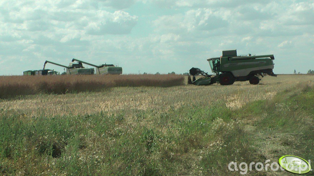 Kombajn Fendt 6300 C podczas prac żniwnych na polu zboża. Prezentowany model wyposażony jest w heder z motowidłami, co jest charakterystyczne dla koszenia zbóż. Maszyna pracuje na rozległym polu, gdzie wykonuje proces zbioru ziarna. Kombajn Fendt 6300 C to maszyna o wysokich parametrach technicznych, wyposażona w nowoczesny system omłotu. Posiada silnik o mocy, która zapewnia efektywną pracę w wymagających warunkach polowych. Zbiornik ziarna o dużej pojemności umożliwia długotrwałą pracę bez częstego przerywania na wyładunek, co jest kluczowe podczas intensywnych żniw. Konstrukcja maszyny oraz jej funkcjonalności dostosowane są do pracy na różnorodnych terenach, co czyni ją wszechstronnym narzędziem w gospodarstwach rolnych.