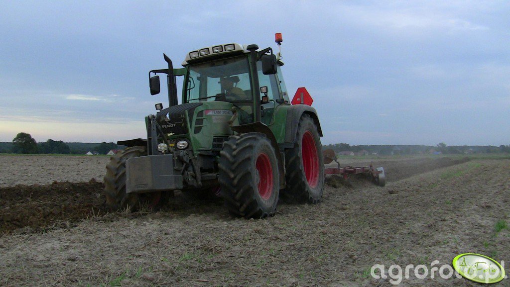 Ciągnik Fendt 312 Vario TMS orze pole, wykorzystując swoją elastyczną moc 125 KM, co pozwala na swobodną współpracę z pługiem Lechia Puchaczów 4 1. Ten model, znany z bezstopniowej skrzyni biegów Vario, zapewnia płynność jazdy i precyzyjne dostosowanie prędkości do warunków polowych. Fendt 312, wyposażony w czterocylindrowy silnik o pojemności 4,04 litra, skutecznie radzi sobie z pracą na różnorodnych terenach, co sprawia, że doskonale nadaje się do wydajnej i dokładnej orki. W połączeniu z solidnym pługiem, maszyna ta stanowi niezawodny duet na rolniczym polu pracy.