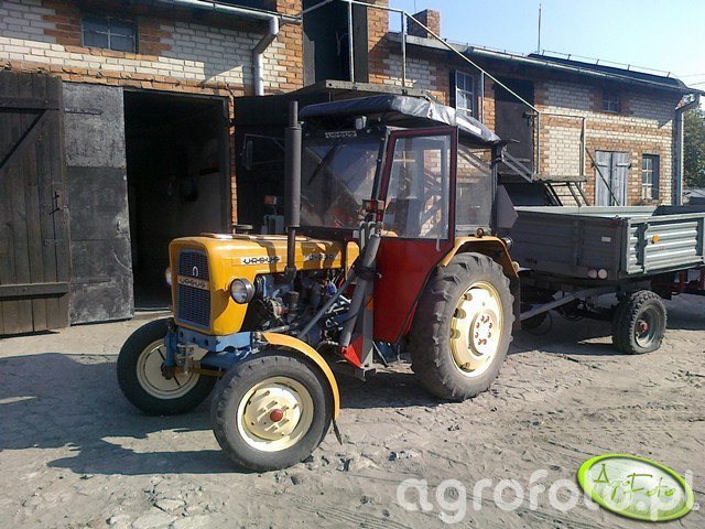 Ursus C-330 podczas lekkich prac transportowych z jednoosiową przyczepą rolniczą na placu gospodarstwa wykorzystuje pełnię swoich możliwości jako podstawowy ciągnik pomocniczy. Model C-330 był produkowany w latach 1967–1987 i wyposażony jest w dwucylindrowy silnik wysokoprężny S-312C o pojemności 1960 cm³, rozwijający moc ok. 30 KM, co w zupełności wystarcza do obsługi niewielkich ładunków i manewrowania na ograniczonej przestrzeni podwórza. Mechaniczna skrzynia biegów 6 2 pozwala dobrać odpowiednie przełożenie do jazdy z przyczepą w gospodarstwie i na krótkich odcinkach drogowych, a masa własna około 1900 kg zapewnia stabilność zestawu. Tylny trzypunktowy układ zawieszenia o udźwigu około 1200 kg czyni z C-330 uniwersalny ciągnik do współpracy także z narzędziami uprawowymi. Na polskim rynku wtórnym przybliżone ceny zadbanych egzemplarzy Ursusa C-330 mieszczą się zazwyczaj w przedziale 15 000–30 000 zł, zależnie od rocznika i stanu technicznego.