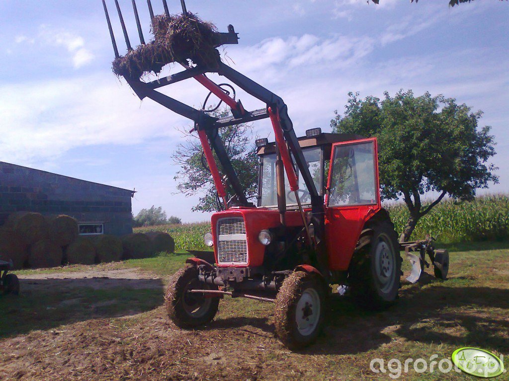 'ciapek'- wspomaganie kierownicy na orbitrolu, tur własnej roboty o udźwigu około 1200kg, rozdzielacz t=3sekcyjny który pozwala podnosić i opuszczać gdyż są siłowniki dwustronnego dzialanie, poziomowanie osprzętu, i krokodyl lecz na zdj jest zdemontowany, przednia oś poszerzona tylnia również :rolleyes: