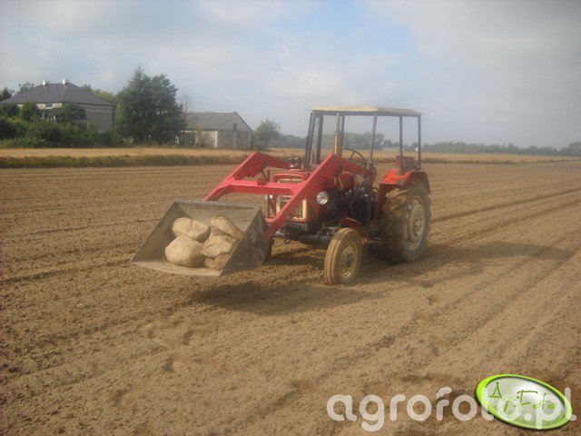 Ursus C-330 z ładowaczem czołowym (turem) wykonuje lekkie prace przeładunkowe w gospodarstwie, wykorzystując prostą, ale trwałą konstrukcję ciągnika produkowanego w latach 1967–1987. Maszyna napędzana jest dwucylindrowym silnikiem diesla S-312C o pojemności 1960 cm³ i mocy około 30 KM, co przy niewielkiej masie własnej rzędu 1900–2000 kg pozwala efektywnie współpracować z ładowaczem przy transporcie obornika, materiałów sypkich czy balotów. Mechaniczna skrzynia biegów 6 2 umożliwia dobór odpowiedniego przełożenia do manewrowania z turem na podwórzu i na polu, a prosty układ hydrauliczny z tylnym TUZ o udźwigu ok. 800–900 kg wystarcza do obsługi podstawowych narzędzi. Ursus C-330 z turem pozostaje popularnym, ekonomicznym zestawem w małych i średnich gospodarstwach, a przybliżone ceny używanych egzemplarzy w Polsce mieszczą się zazwyczaj w przedziale 15–30 tys. zł w zależności od stanu i wyposażenia.