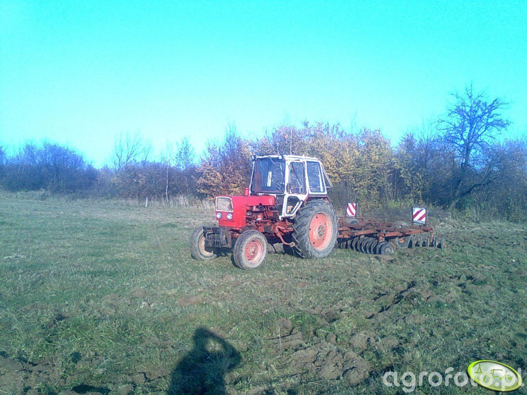 Ciągnik rolniczy Jumz, znany ze swojej wytrzymałości, pracuje na polu z rosyjską broną talerzową. Model ten jest często wyposażony w silnik o mocy około 65 KM, który umożliwia wydajną obróbkę gleby przy użyciu sprzętu rolniczego, takiego jak brona. W standardzie Jumz posiada czterocylindrowy silnik o pojemności około 4,75 litra, co zapewnia mu odpowiednią moc i moment obrotowy do pracy w trudnych warunkach polowych. Ciągnik wyróżnia się mechaniczną skrzynią biegów z kilkunastoma przełożeniami, co pozwala na precyzyjne dostosowanie prędkości jazdy do obciążeń związanych z pracą z maszynami, jak brona talerzowa, która efektywnie miesza glebę, przygotowując ją do siewu.