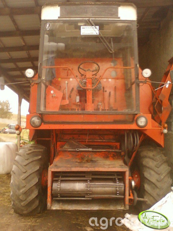 Kombajn Bizon Rekord Z058 sfotografowany w przestrzeni do przechowywania na placu gospodarstwa. Maszyna charakteryzuje się typową dla serii Bizon czerwoną kolorystyką i masywną konstrukcją. Wyposażony w Perkinsa silnik o mocy 120 KM, zapewniając wydajność potrzebną do prac żniwnych. Kombajn posiada tradycyjny system omłotowy z bębnem młócącym o szerokości 1,62 m. Pojemność zbiornika na ziarno wynosząca 3 300 litrów umożliwia pracę bez częstych przerw na rozładunek. Bizon Rekord Z058, znany z efektywnego koszenia zbóż, idealnie sprawdza się na średniej wielkości gospodarstwach rolnych, umożliwiając skuteczną eksploatację w sezonie żniw.