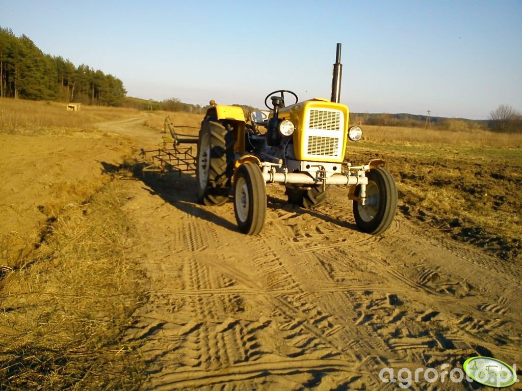 Ursus C-330 współpracuje z zawieszaną broną talerzową podczas bronowania ścierniska, wykorzystując swoją prostą konstrukcję i dobrą trakcję na lekkich i średnich glebach. Ciągnik tej serii był produkowany w latach 1967–1987 i napędzany dwucylindrowym silnikiem S-312C o pojemności 1960 cm³, rozwijającym ok. 30 KM, co w zupełności wystarcza do pracy z niewielką talerzówką w małym gospodarstwie. Mechaniczna skrzynia biegów 6 2 pozwala dobrać prędkość roboczą do warunków pola, a masa własna około 1900 kg zapewnia stabilność agregatu uprawowego. Tylny TUZ o udźwigu w granicach 800–900 kg bez problemu unosi lekką bronę talerzową, umożliwiając szybkie doprawienie roli po żniwach lub przed siewem poplonów. Na rynku wtórnym w Polsce przybliżone ceny zadbanych Ursusów C-330 mieszczą się zazwyczaj w przedziale 15–30 tys. zł, zależnie od stanu technicznego i wyposażenia.