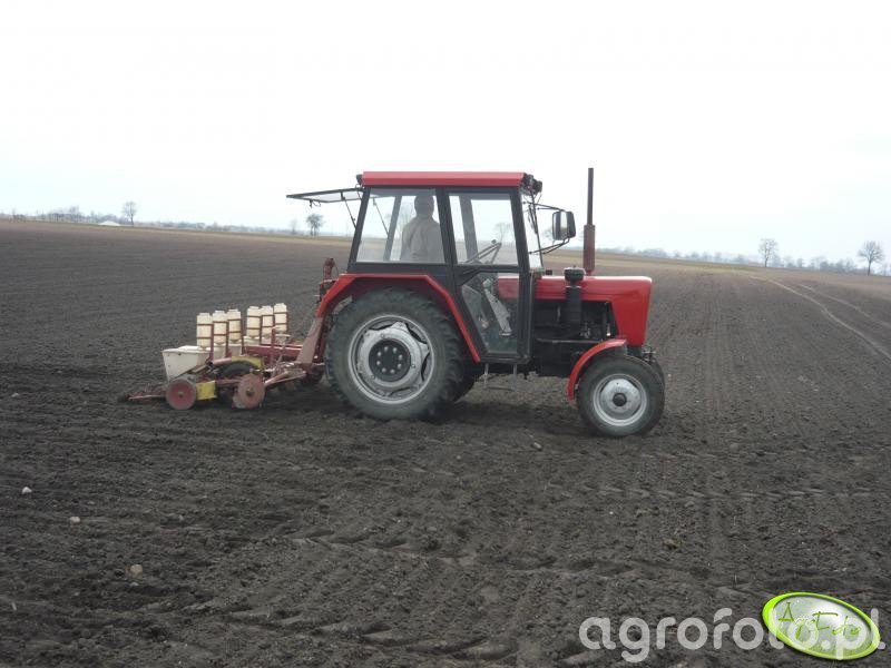 Ursus C-330 podczas siewu współpracuje z zawieszanym siewnikiem rzędowym, wykorzystując swoją prostą, lecz bardzo funkcjonalną konstrukcję do lekkich prac polowych. Ciągnik produkowany w latach 1967–1987 jest wyposażony w dwucylindrowy silnik wysokoprężny S-312C o pojemności 1960 cm³ i mocy około 30 KM, co przy niskiej masie własnej rzędu 1900–2000 kg pozwala na ekonomiczną pracę na glebach lekkich i średnich. Mechaniczna skrzynia biegów 6 2 zapewnia dobór prędkości roboczej odpowiedniej do równomiernego wysiewu nasion, a tylny TUZ o udźwigu około 800–900 kg bez problemu przenosi klasyczny siewnik z zasypanym zbożem. Prosta budowa C-330, duży prześwit i dobra zwrotność sprawiają, że ciągnik ten nadal jest popularny w małych i średnich gospodarstwach, a jego przybliżone ceny rynkowe w Polsce mieszczą się zazwyczaj w granicach 12–25 tys. zł w zależności od stanu technicznego i rocznika.