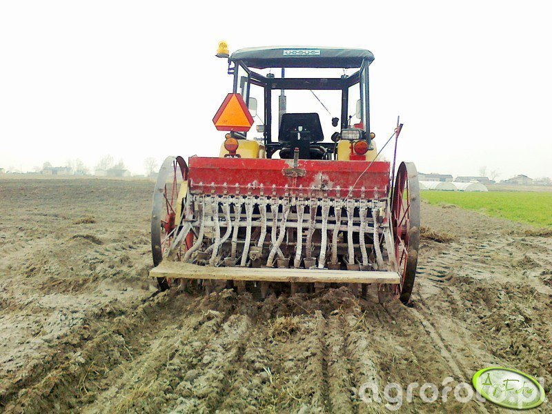 Ursus C-330 współpracuje z siewnikiem zbożowym SO-14 podczas siewu na polu, wykorzystując w pełni swoje możliwości jako lekki ciągnik do prac uprawowo-siewnych w małym gospodarstwie. Model C-330 był produkowany w latach 1967–1987 i wyposażony jest w dwucylindrowy silnik wysokoprężny Ursus Z-4003 o pojemności 1960 cm³ i mocy około 30 KM, co zapewnia wystarczający zapas momentu obrotowego do uciągu niewielkiego siewnika w typowych warunkach glebowych. Mechaniczna skrzynia biegów 6 2 umożliwia dobór prędkości roboczej odpowiedniej do równomiernego wysiewu z SO-14, a masa własna ciągnika około 1900 kg sprzyja stabilności agregatu. Tylny trzypunktowy układ zawieszenia o udźwigu około 800 kg bez problemu przenosi ciężar siewnika z zasypanym zbożem. Przybliżone ceny używanych Ursusów C-330 na rynku polskim mieszczą się zazwyczaj w przedziale 15 000–30 000 zł w zależności od stanu technicznego.