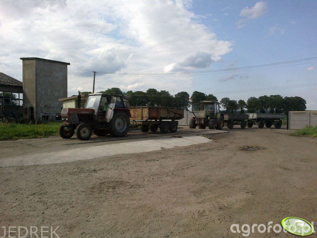 Ursus C-385 współpracuje z jednoosiową przyczepą rolniczą Warfama, przygotowaną do typowych prac przeładunkowych na placu gospodarstwa. Ciągnik należy do serii ciężkiej Ursusa, produkowanej w latach 1969–1983, wyposażonej w 4‑cylindrowy silnik wysokoprężny Zetor Z8001 o pojemności 4,6 l i mocy około 76 KM, co pozwala na sprawne manewrowanie z załadowaną przyczepą oraz utrzymanie odpowiedniej prędkości transportowej. Mechaniczna skrzynia biegów o 16 przełożeniach do przodu zapewnia dobór właściwego biegu zarówno do pracy na utwardzonym placu, jak i dojazdu po drogach polnych. Masa własna Ursusa C‑385 na poziomie około 4,2 t poprawia uciąg i stabilność zestawu, a tylny podnośnik o udźwigu około 3,5 t pozwala na agregowanie dodatkowych maszyn roboczych. Na rynku wtórnym w Polsce przybliżone ceny zadbanych egzemplarzy C‑385 mieszczą się zazwyczaj w przedziale 30–50 tys. zł, zależnie od stanu technicznego i wyposażenia.