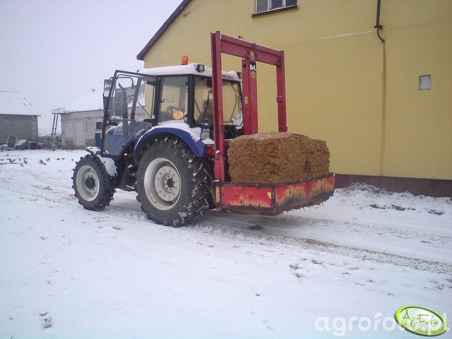 Ciągnik Farmtrac 665 DT, znany z efektywnej pracy w rolnictwie, zajmuje się załadunkiem bel na placu gospodarstwa. Wyposażony w silnik Perkins o mocy 65 KM, zapewnia wystarczającą siłę do obsługi różnych rolniczych zadań. Dzięki 3-cylindrowej konstrukcji i pojemności skokowej 2.9 L, maszyna gwarantuje solidne osiągi przy jednoczesnym niskim zużyciu paliwa. Mechaniczna skrzynia biegów 8/2 umożliwia płynne dostosowanie prędkości do wymagań aktualnego zadania. Ciągnik współpracuje z owijarką bel, co ułatwia zmechanizowany transport i składowanie paszy, zwiększając tym samym efektywność operacyjną gospodarstwa.