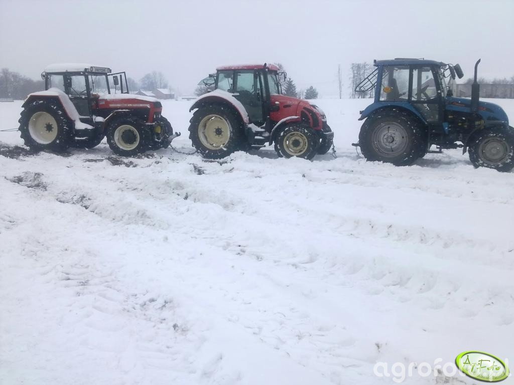 Przecież one stoją na polu... Ziemia nie jest zamarznięta więc śnieg szybko przekopywały do ziemii, z resztą na zdjęciu obok to widać. Piotrze, jak już pisałem, porwaliśmy kilka linek a na szybko niestety z nieba nam nie spadły oprócz śniegu. Nawet jak kiszonke robimy i słabsze ciągniki wciąga się to zawsze lina idzie pod spodem ciągnika, podobnie jak przy bagnistych żniwach gdy kombajn sie utopi, czepiamy linke za przednią oś napędową a nie za tył