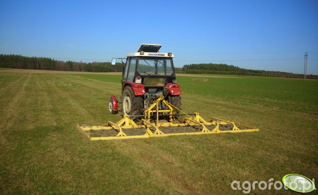 Ciągnik Escort 450 pracuje na łące, wykorzystując swoje zdolności do efektywnej współpracy z włóką. Wyposażony w silnik o mocy 50 KM, charakteryzuje się wytrzymałym, trzycylindrowym układem i pojemnością skokową wynoszącą 2,784 cm³, co zapewnia niezawodność podczas codziennych zadań. Mechaniczna skrzynia biegów 8/2 pozwala na precyzyjne manewrowanie, co jest kluczowe podczas prac na różnorodnych terenach. Escort 450, z jego sprawdzoną konstrukcją, idealnie nadaje się do zadań związanych z pielęgnacją terenów zielonych, gdzie jego moc i właściwości mechaniczne znajdują pełne zastosowanie.