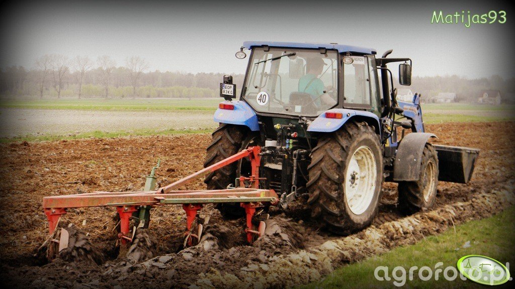 Wiosna 2013 || Orka w trudnych warunkach: New Holland T5040 + Agro Masz 4x35. Liczę na pozytywne ocenki i komentarze