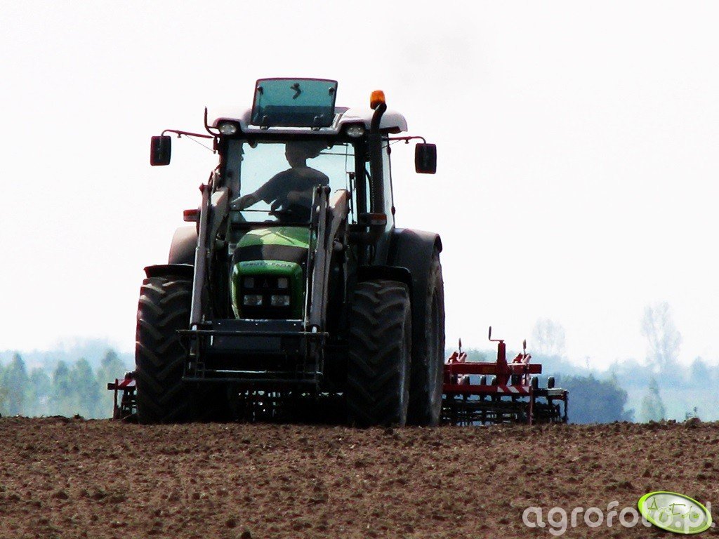 Ciągnik Deutz Fahr Agrofarm 410 manewruje na polu z imponującą precyzją, współpracując z agregatem uprawowym Expom Lech o szerokości 3.3 m. Wyposażony w silnik marki Deutz, czterocylindrowy o pojemności skokowej 4.0 L, oferuje moc na poziomie 100 KM, co zapewnia efektywność w wymagających warunkach polowych. Mechaniczna skrzynia biegów 30/30 umożliwia precyzyjne dopasowanie prędkości do wykonywanych zadań. Wydajność maszyny podparta jest przez solidny Tylni Układ Zawieszenia, który dźwiga do 4400 kg, co doskonale harmonizuje z pracą agregatu Expom, doskonaląc przygotowanie gleby pod siew.