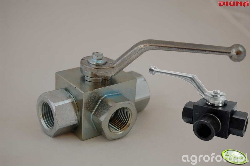 Zawory hydrauliczne kulowe trójdrożne.