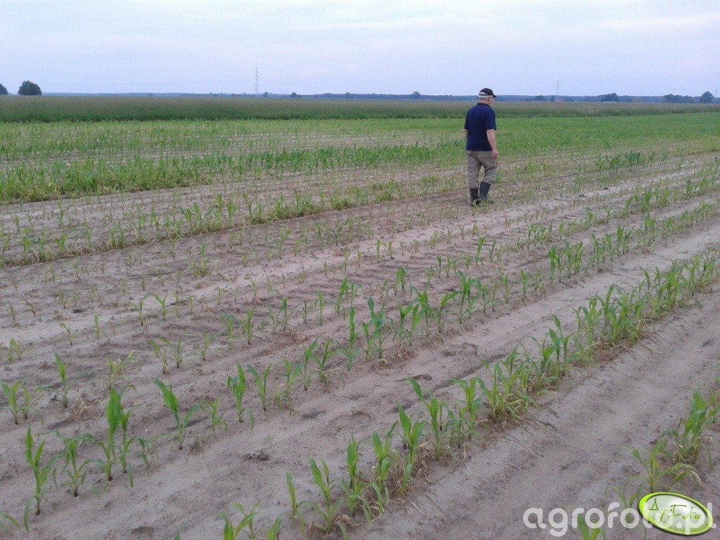 Aktualny stan kukurydzy widoczny na zdjęciu- znalazłem nieliczne ploniarki zbożówki i skrzypionki. Kukurydza ładnie i równo wschodziła, a później zaczęła się różnicować. Ostatnie dwa tygodnie brakowało słońca, w dzień temeratura powietrza nie przekraczała 20 stopni C, a poza tym sporo padało. Co może być przyczyną takiego mocnego zróżnicowania roślin??