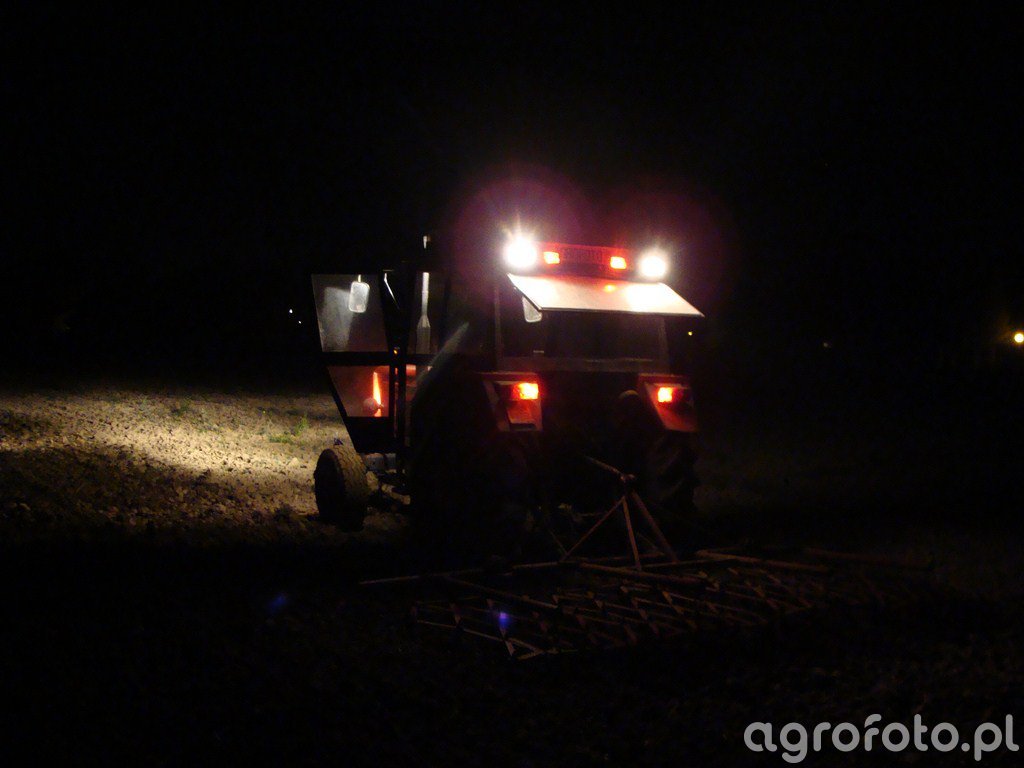 Wieczorne bronowanie podorywki:) Przy okazji widać jak oświetla przód:)