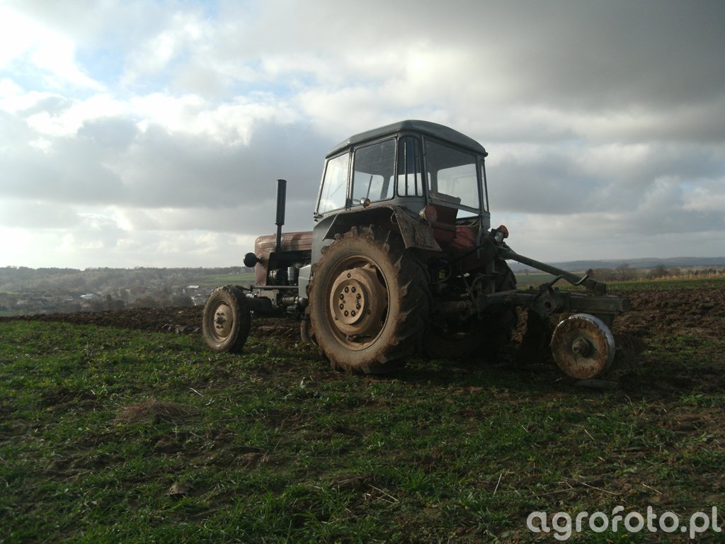 Ursus C-330 w trakcie orki współpracuje z dwuskibowym pługiem UG 2, tworząc typowy zestaw roboczy dla małych i średnich gospodarstw. Ciągnik wyposażony jest w dwucylindrowy silnik wysokoprężny S-312C o pojemności 1960 cm³ i mocy około 30 KM, produkcji Zakładów Mechanicznych Ursus, co zapewnia wystarczający zapas momentu do pracy z pługiem na lekkich i średnich glebach. Mechaniczna skrzynia biegów 6 2 pozwala dobrać odpowiednią prędkość roboczą do głębokości orki, a udźwig tylnego TUZ rzędu 800–900 kg bez problemu radzi sobie z zawieszanym pługiem UG 2. Masa własna C-330 wynosi około 1900 kg, co przy odpowiednim dociążeniu poprawia trakcję na zaoranym polu. Model Ursus C-330 był produkowany w latach 1967–1987, a jego przybliżone ceny rynkowe w Polsce za zadbany egzemplarz mieszczą się zwykle w przedziale 15 000–30 000 zł w zależności od stanu technicznego i wyposażenia.