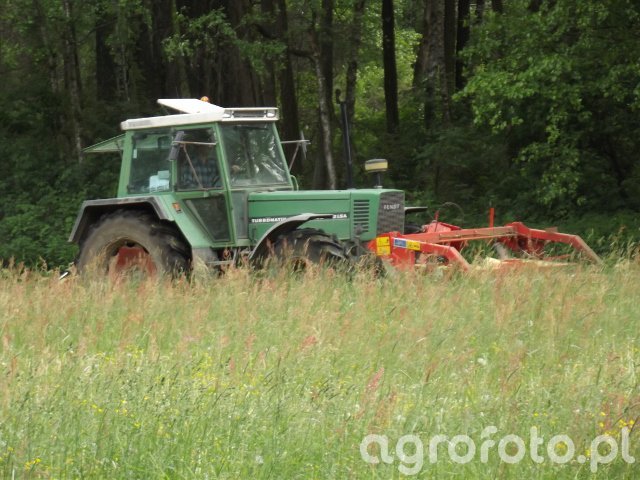 Ciągnik Fendt Farmer 312 LSA dynamicznie pracuje na łące podczas koszenia trawy. Wyposażony w silnik o mocy 115 KM, który zapewnia wydajność i niezawodność w wymagających warunkach rolniczych. Sześciocylindrowy silnik o pojemności 6,0 litra to serce tej maszyny, pozwalające na płynną współpracę z towarzyszącymi urządzeniami i narzędziami, które usprawniają proces zbiorów. Dzięki mechanicznej skrzyni biegów 12/12, Fendt Farmer 312 LSA świetnie dostosowuje się do zmiennych warunków terenowych, umożliwiając precyzyjne manewrowanie. W trakcie pracy łączy się z dodatkowymi urządzeniami, efektywnie realizując zadania polowe.