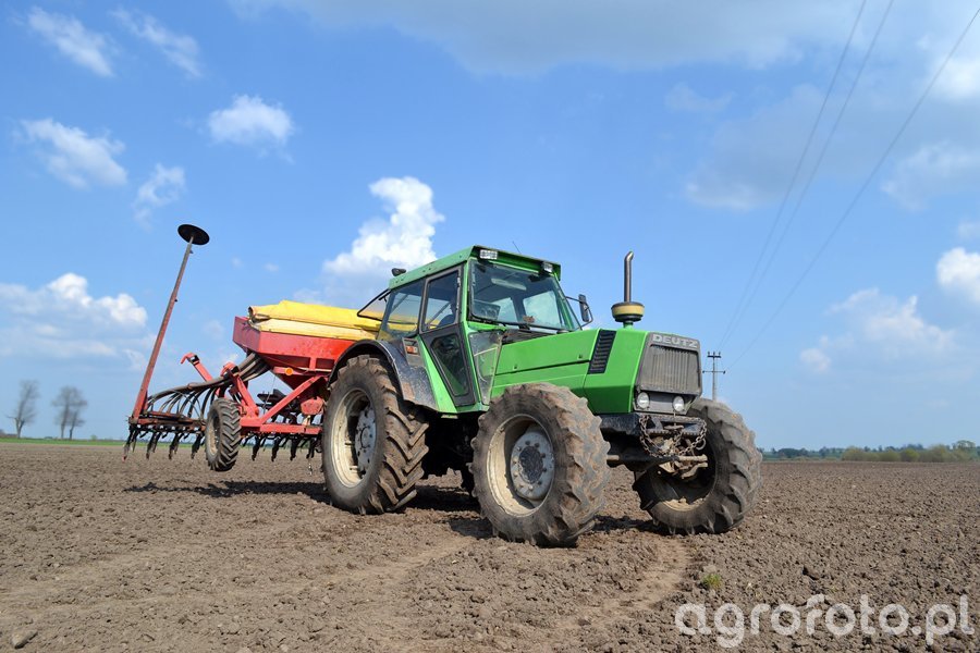 Ciągnik Deutz-Fahr DX pracuje na polu, wykorzystując swoją moc dla efektywnego siewu. Wyposażony w silnik Deutz o mocy 80 KM, zapewnia wystarczającą siłę do współpracy z ciężkim siewnikiem Mistral. Dzięki 6-cylindrowemu silnikowi o pojemności skokowej 6 litrów, ciągnik oferuje niezawodną i stabilną wydajność w każdych warunkach polowych. Maszyna precyzyjnie współpracuje z siewnikiem podczas prowadzenia prac siewnych, co optymalizuje efektywność operacji. Wytrzymała konstrukcja ciągnika i zdolność do przewożenia ciężarów w trudnym terenie sprawiają, że jest idealnym wyborem dla rolników dążących do maksymalizacji wydajności siewu.