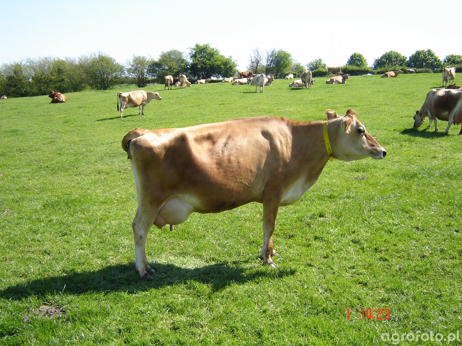 klarens 0 Opublikowano 12 Czerwca 2014 Mamy stado mieszane, trzy lata temu mieliśmy sporo AA maluchów, które poszły na sprzedaż, podobno dobre mięso na hamburgery maja od dwóch lat bardziej koncentrujemy się na rozszerzaniu stada czystej jersey, obecnie doimy 80 sztuk w sumie dokładnie jest ich 152 sztuki, w tym roku oczekujemy około 70 cielaków . Z mlekiem rożnie, średnio 20 litrów, są tez i takie które przekraczają 30 litrów na dzień. Odnośnik do komentarza https://www.agrofoto.pl/forum/gallery/image/507582-jersey/#findComment-1526180
