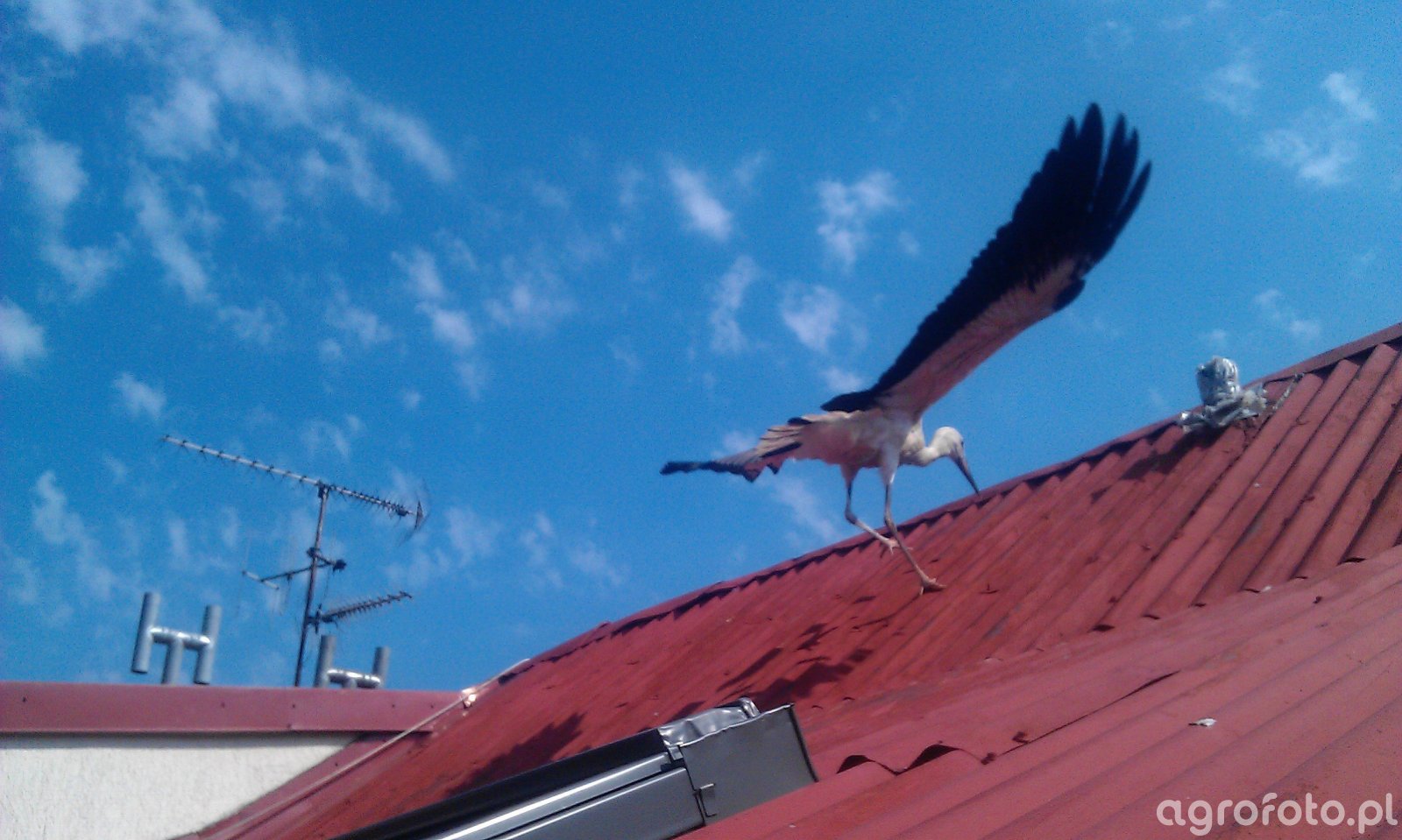 Dziś wylądował mi młody bocian na dachu