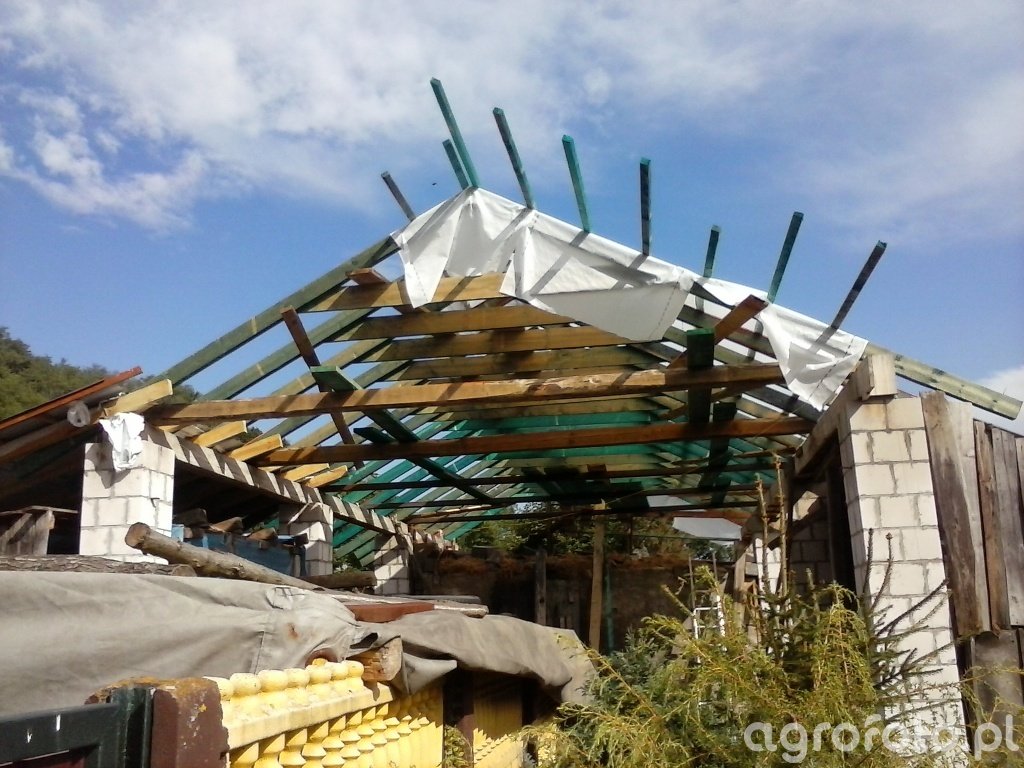Ciag dalszy z budowy , stan na 16-08-2014 , na zimę juz okryta dachem i jedne wrota zrobione