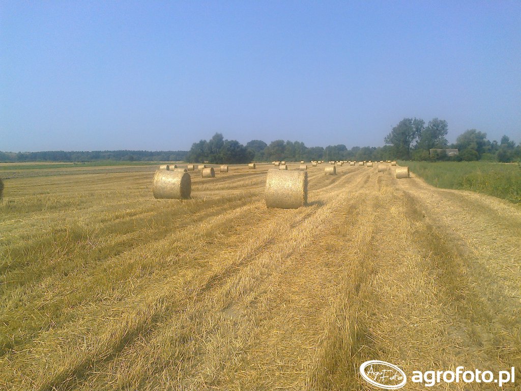 Z pszenicy wyszło ok 25 belek z ha z tego kawałka, ale tu leżała duża część, a na 70a stojącej było 28 belek.