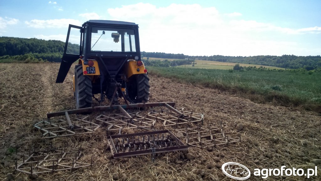 Ursus C-330 w wersji dwunapędowej o mocy 30 KM, produkowany w latach 1967–1987, współpracuje z lekkim agregatem uprawowym podczas przygotowania pola do siewu. Ciągnik napędzany jest dwucylindrowym silnikiem wysokoprężnym S-312C o pojemności 1960 cm³, co w połączeniu z prostą, niesynchronizowaną skrzynią biegów 6 2 zapewnia wystarczający zakres prędkości do płytkiej uprawy przedsiewnej na małych i średnich gospodarstwach. Masa własna około 1900 kg oraz udźwig tylnego TUZ rzędu 800–900 kg pozwalają bezpiecznie obsłużyć niewielki agregat zębowy, zachowując odpowiednią przyczepność nawet na lżejszych glebach. Dzięki niewielkim gabarytom ciągnik sprawdza się w węższych działkach i na uwrociach, a na polskim rynku wtórnym przybliżone ceny zadbanych egzemplarzy Ursusa C-330 mieszczą się najczęściej w przedziale 15–30 tys. zł w zależności od stanu technicznego i wyposażenia.