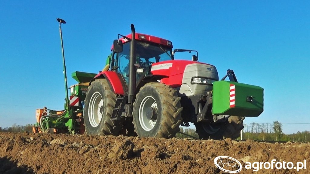 **McCormick MTX150** Na zdjęciu widzimy prawdziwego rolniczego konia pociągowego, który mimo upływu lat wciąż dzielnie stawia czoła najcięższym wyzwaniom – to McCormick MTX150! Ten egzemplarz, produkowany w latach około 2002-2007, to synonim niezawodności i solidnej inżynierii. Pod jego maską, z reguły, drzemie pancerne, sześciocylindrowe serce Perkinsa o mocy około 150 koni mechanicznych, które słynie z wytrzymałości i niskiego spalania, nie męcząc się nawet po wielu godzinach roboty w polu. Na prezentowanym ujęciu MTX150 w charakterystycznej czerwono-srebrnej barwie, wyposażony w masywny, zielony obciążnik na przednim TUZ-ie, pracuje w duecie z pneumatycznym siewnikiem Amazone, przygotowując pole pod przyszłe plony. Solidna konstrukcja, komfortowa kabina i brak zbędnych "plastików" to jego znaki rozpoznawcze. Dziś, za zadbany model MTX150, trzeba liczyć się z wydatkiem rzędu 90 000 do 140 000 zł, co potwierdza, że te maszyny doskonale trzymają cenę i cieszą się niesłabnącym zaufaniem wśród rolników szukających bezkompromisowej siły i trwałości.