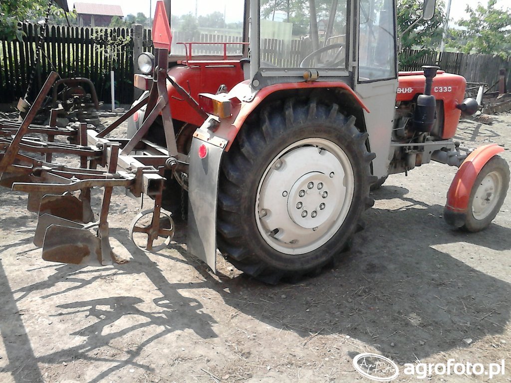 Ursus C-330 to lekki ciągnik rolniczy produkowany w latach 1967–1987, wyposażony w dwucylindrowy silnik wysokoprężny S-312C o pojemności 1960 cm³ i mocy około 30 KM, co dobrze sprawdza się przy pracach z niewielkim pługiem na placu gospodarstwa oraz przy lżejszych zabiegach uprawowych. Prosta, częściowo zsynchronizowana skrzynia biegów 6 2 pozwala dobrać prędkość do orki, bronowania czy prac transportowych na krótkich dystansach. Masa własna ciągnika około 1900 kg zapewnia wystarczającą przyczepność, a tylny trójpunktowy układ zawieszenia o udźwigu w granicach 800–1200 kg umożliwia współpracę z jedno- lub dwuskibowym pługiem oraz innymi maszynami uprawowymi typowymi dla małych gospodarstw. Na rynku wtórnym w Polsce przybliżone ceny Ursusa C-330 mieszczą się zazwyczaj w przedziale 15–35 tys. zł, zależnie od stanu technicznego i wyposażenia.
