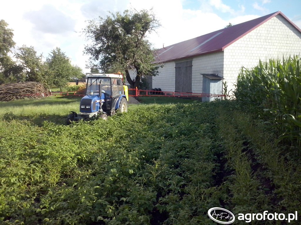 Ciągnik rolniczy Farmtrac Escort 450, dysponujący mocą około 45 KM, intensywnie pracuje na polu, współpracując z opryskiwaczem polowym. Napędzany silnikiem marki Escorts o czterech cylindrach i pojemności 3.1 litra, ten kompaktowy model jest przystosowany do precyzyjnego prowadzenia prac ochrony roślin. Wyposażony w mechanicznie sterowaną skrzynię biegów, Escort 450 łatwo dostosowuje się do różnorodnych warunków terenowych, co czyni go niezastąpionym narzędziem w gospodarstwach o średniej wielkości. Efektywne wykorzystanie swojej mocy zapewnia wydajną współpracę z ciężkim opryskiwaczem, umożliwiając dokładne i równomierne rozprowadzenie środków chemicznych po roślinach. Ten stabilny układ napędowy oraz udźwig użyteczny, sprawiają, że Escort 450 jest wszechstronnym i dynamicznym wsparciem rolnika w codziennych pracach polowych.