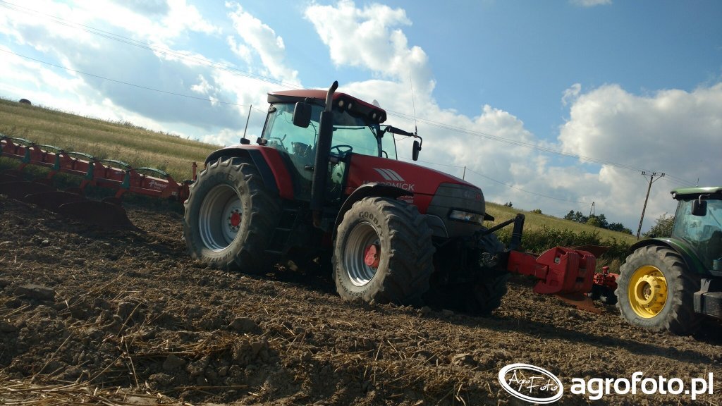 McCormick XTX 200 – maszyna, która nie boi się wyzwań. Na zdjęciu widzimy rasowego, czerwonego McCormicka XTX 200, który z godnością i mocą stawia czoła ciężkiej orce, ciągnąc pokaźny pług obrotowy. To model produkowany w latach 2007-2011, który zdążył już zapracować na miano niezawodnego i potężnego pomocnika w polu. Pod jego maską kryje się sześciocylindrowy silnik BetaPower o pojemności 6.7 litra, który generuje imponujące 200-205 koni mechanicznych – wystarczającą siłę, by z łatwością radzić sobie z najtrudniejszą ziemią. Masywne opony GoodYear z agresywnym bieżnikiem gwarantują wzorową trakcję na każdej glebie, a zamontowany z przodu obciążnik świadczy o gotowości do ciężkiej pracy i odpowiednim dociążeniu. Świetny stan blacharki i błyszczący lakier tylko potwierdzają, że maszyna była pieczołowicie konserwowana i dba się o nią, jak na prawdziwego gospodarza przystało. Dziś za zadbany egzemplarz XTX 200 trzeba zapłacić od 150 do 250 tys. zł, co jasno pokazuje, jak dobrze ten model trzyma cenę i wciąż jest łakomym kąskiem na rynku wtórnym. Prawdziwy koń pociągowy, który bez zbędnych fajerwerków robi robotę!