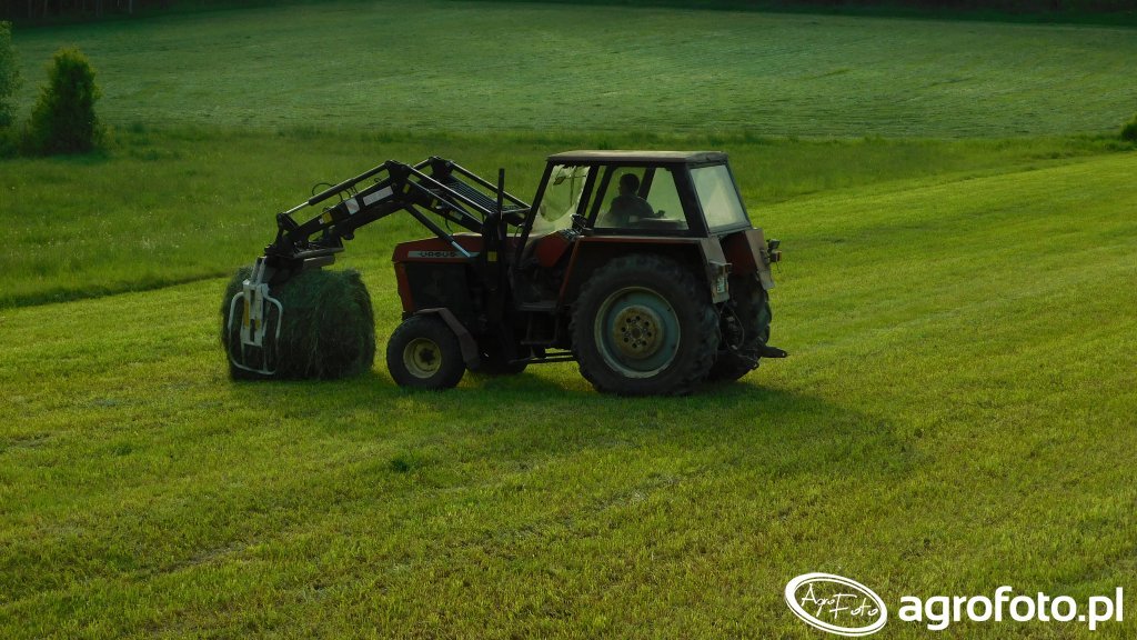 Ursus 912 z ładowaczem czołowym Metal-Fach pracuje przy transporcie bel sianokiszonki na łące, wykorzystując moc około 80 KM z czterocylindrowego silnika wysokoprężnego Zetor Z 8001 o pojemności 3,9 l, montowanego w tych ciągnikach w latach produkcji 1984–1992. Mechaniczna skrzynia biegów z 16 przełożeniami do przodu i 8 wstecznymi pozwala dobrać właściwą prędkość zarówno do podjazdu pod pryzmę, jak i do precyzyjnego odkładania bel. Masa własna Ursusa 912 rzędu 4,2 t zapewnia stabilność przy pracy z turem, a tylny podnośnik o udźwigu około 4,2 t umożliwia dodatkowo podczepienie przyczepy do transportu bel z pola do gospodarstwa. Ten model, ceniony za prostą konstrukcję i dostępność części, osiąga na rynku wtórnym w Polsce przybliżone ceny w przedziale 35–60 tys. zł w zależności od stanu technicznego i wyposażenia, w tym rodzaju ładowacza czołowego.